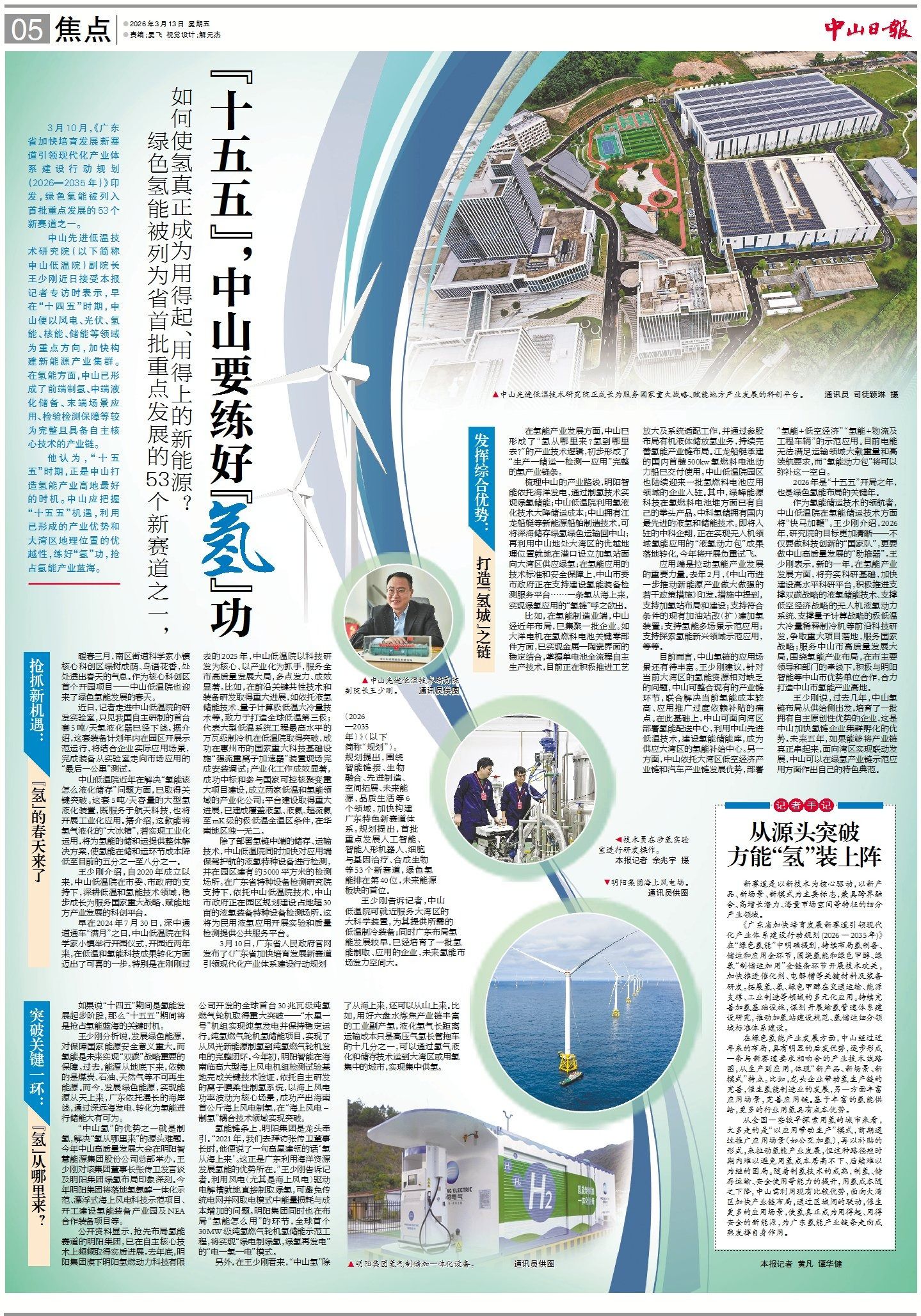 近日,中山先進(jìn)低溫技術(shù)研究院副院長王少剛接受中山日報記者專訪時提出,早在“十四五”時期,中山便以風(fēng)電、光伏、氫能、核能、儲能等領(lǐng)域為重點方向,加快構(gòu)建新能源產(chǎn)業(yè)集群。在氫能方面,中山已形成了前端制氫、中端液化儲備、末端場景應(yīng)用、檢驗檢測保障等較為完整、且具備自主核心技術(shù)的產(chǎn)業(yè)鏈。