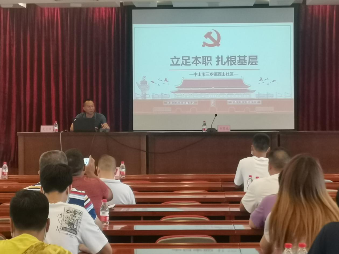 活動(dòng)現(xiàn)場(chǎng),三鄉(xiāng)鎮(zhèn)優(yōu)秀退役軍人代表、西山社區(qū)書記李敏超首先結(jié)合個(gè)人學(xué)習(xí)成長經(jīng)歷,和大家作了《立足本職 扎根基層》主題宣講,分享了他退役后在基層工作的心得感悟。