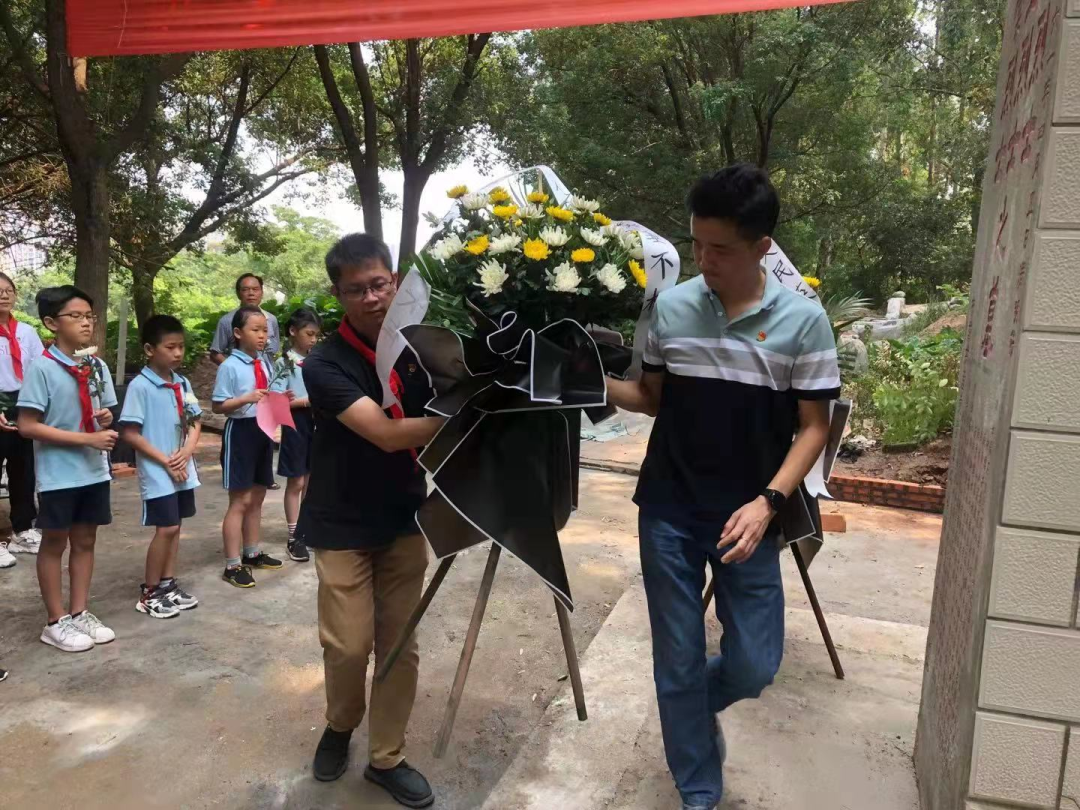 ▲在沙溪鎮(zhèn)黨委委員李海龍、副鎮(zhèn)長候選人余添宏帶領下,按順序依次向楊麗容烈士雕塑獻花。