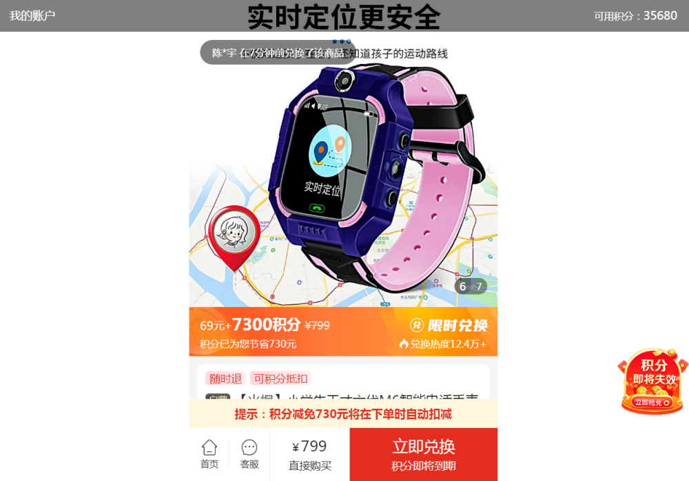 河南消費者馮先生說,前些日子收到一條短信,“說我有3萬多積分將在次日過期,并提供了兌換鏈接,署名‘服務(wù)通知’。”馮先生誤以為是移動運營商的提醒,隨即點開鏈接,以現(xiàn)金加7300積分為孩子購買了“價值”799元的“天才M6智能電話手表”。收到后發(fā)現(xiàn)手表做工低劣,兩小時就沒電了,且無法退貨。