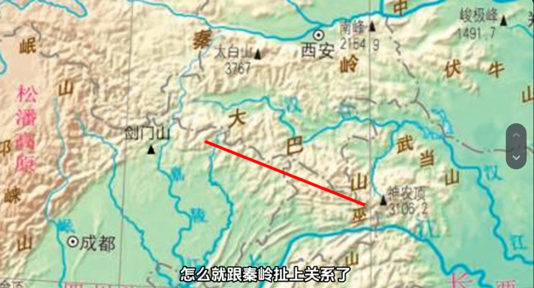來(lái)源地理愛(ài)好者打假視頻截圖:大巴山與秦嶺仍有一定距離