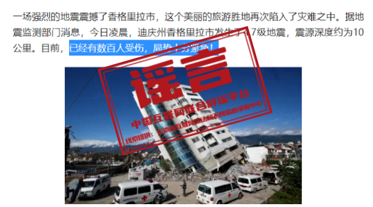 謠 言 云南迪慶香格里拉市4.7級地震中,有數(shù)百人受傷?