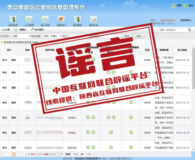 真相:近期,有不法分子偽造西安高新區(qū)公租房信息管理系統(tǒng)審核界面,在網(wǎng)絡(luò)上散布公租房資格審核虛假信息,引發(fā)關(guān)注。對(duì)此,西安高新區(qū)住房和城鄉(xiāng)建設(shè)局發(fā)布《關(guān)于警惕不法分子偽造虛假信息的聲明》稱,切勿輕信網(wǎng)絡(luò)、微信中發(fā)布的高新區(qū)公租房相關(guān)政策虛假信息及類似委托代辦信息,以避免個(gè)人經(jīng)濟(jì)、財(cái)產(chǎn)受到損失。高新區(qū)公租房資格審核全程不代辦、不收費(fèi),審核結(jié)果均以市級(jí)六部門聯(lián)審反饋結(jié)果為準(zhǔn)。同時(shí),任何通過違規(guī)代辦以及提供虛假材料騙取公租房資格的,一經(jīng)發(fā)現(xiàn),將嚴(yán)肅查處,取消保障資格。(來源:陜西省互聯(lián)網(wǎng)聯(lián)合辟謠平臺(tái))