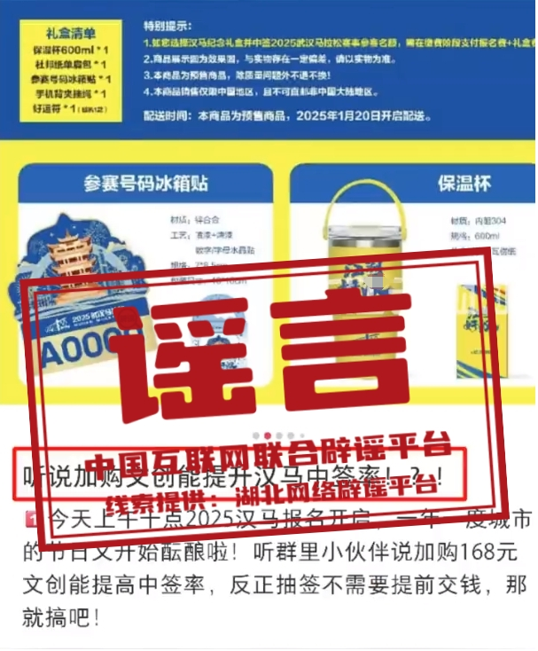 謠 言 加購(gòu)武漢馬拉松文創(chuàng)禮盒可提高中簽率?