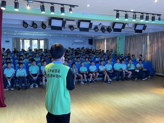 為進(jìn)一步加強(qiáng)學(xué)校禁毒宣傳教育工作,預(yù)防和減少青少年涉毒違法犯罪,讓學(xué)生從思想上樹立禁毒、識(shí)毒、拒毒、防毒、遠(yuǎn)離毒品的意識(shí)。9月7日,三鄉(xiāng)鎮(zhèn)禁毒辦、三鄉(xiāng)鎮(zhèn)禁毒社工服務(wù)中心聯(lián)合鎮(zhèn)文體教育局開展“遠(yuǎn)離毒品,呵護(hù)未來(lái)”為主題的“禁毒第一課”,與學(xué)校共筑防毒墻,共建平安校園。