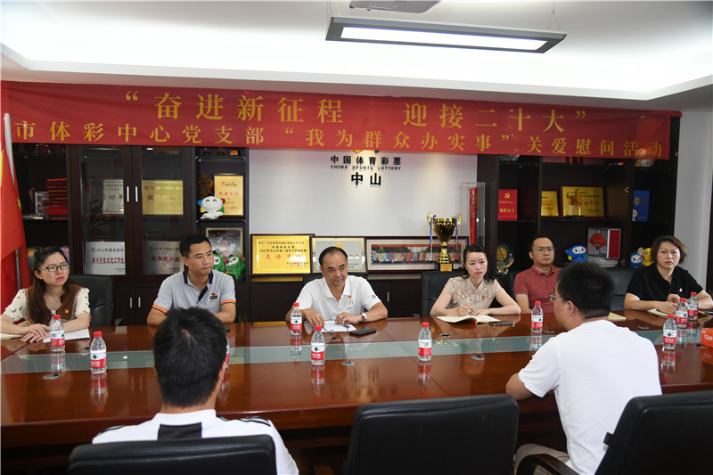 ▲中山體彩黨支部全體黨員與困難實(shí)體店代銷者進(jìn)行座談。